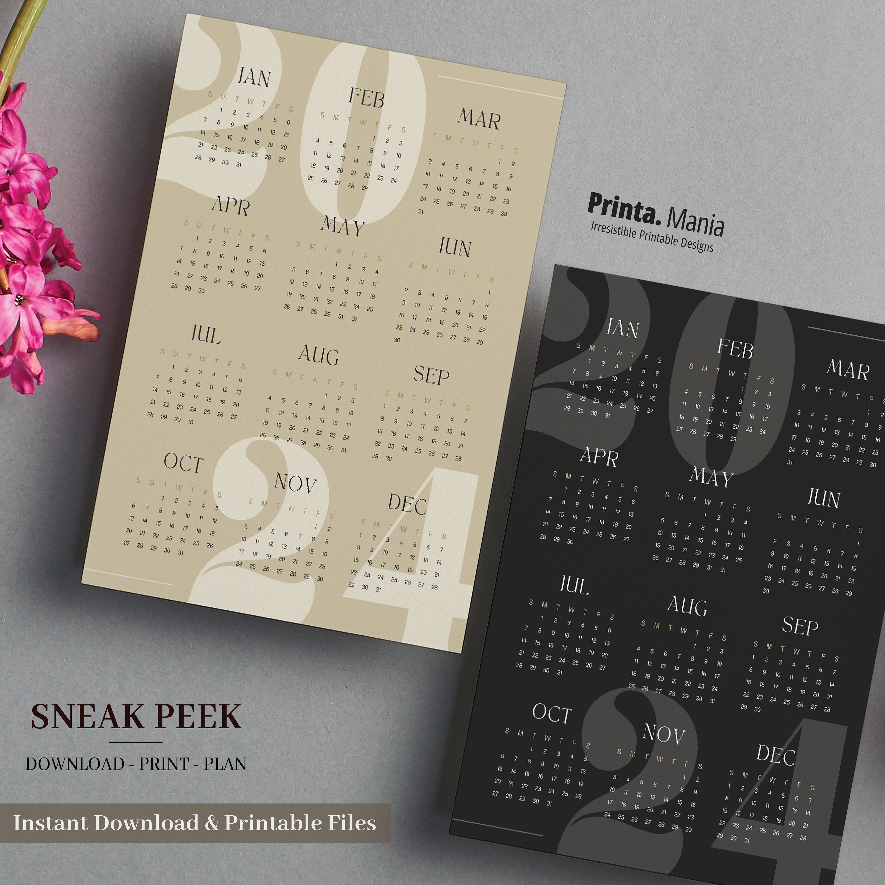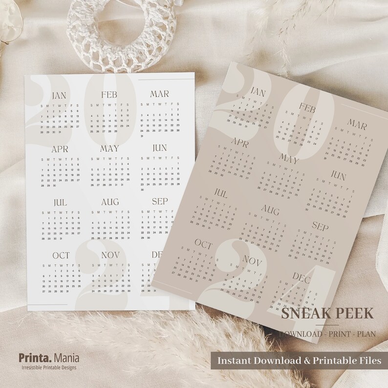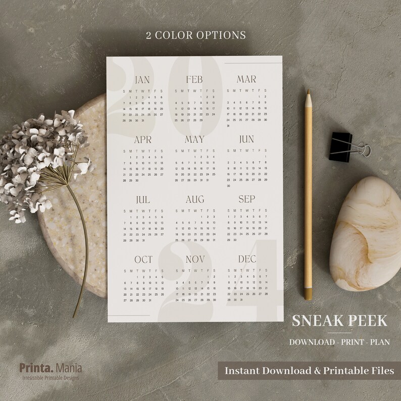 2023 2024 Calendar Minimalist Wall Calendar Digital Calendar 12