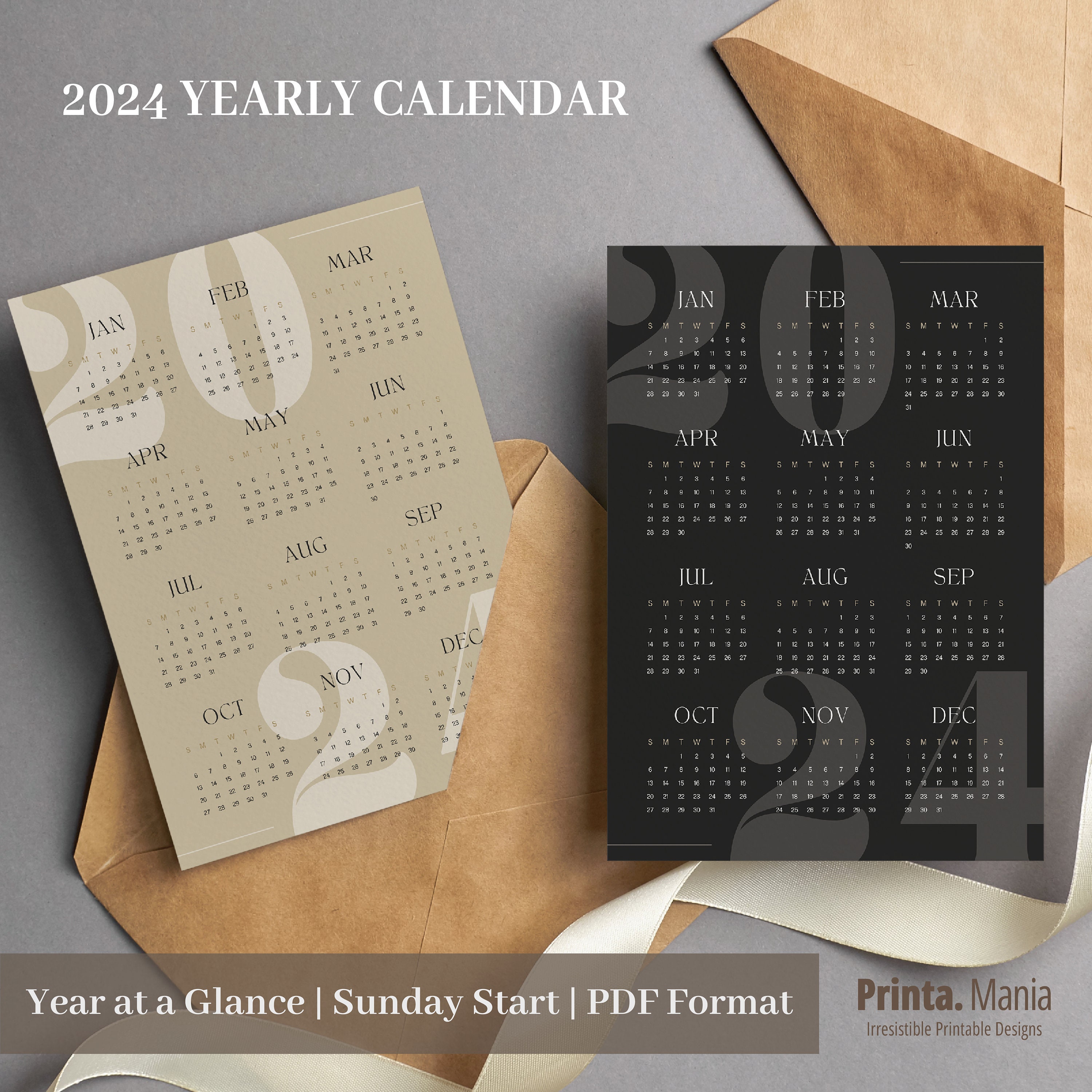 Printable 2024 Yearly Calendar 2024 Overview 2024 Calendar Minimalist