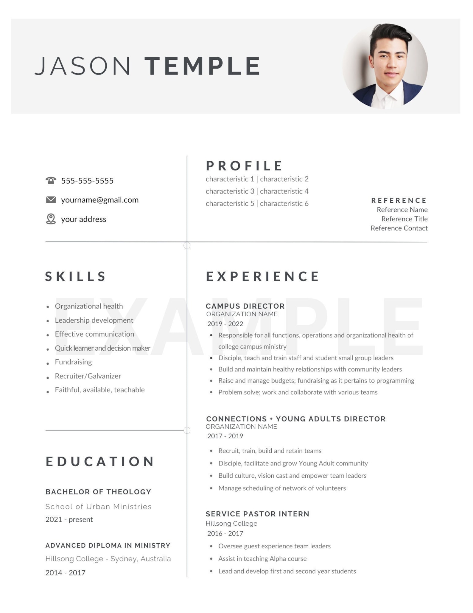 Ministry Resume Templates Template 1 : Resume Examples #P32ExoZVJ8