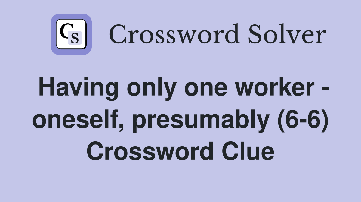 Having only one worker oneself presumably (6 6) Crossword Clue