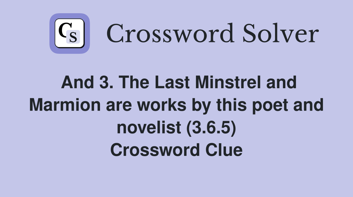 And 3 The Last Minstrel and Marmion are works by this poet and