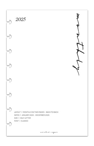 2025 Monthly Calendar Planner Inserts Back to Back Classic Minted