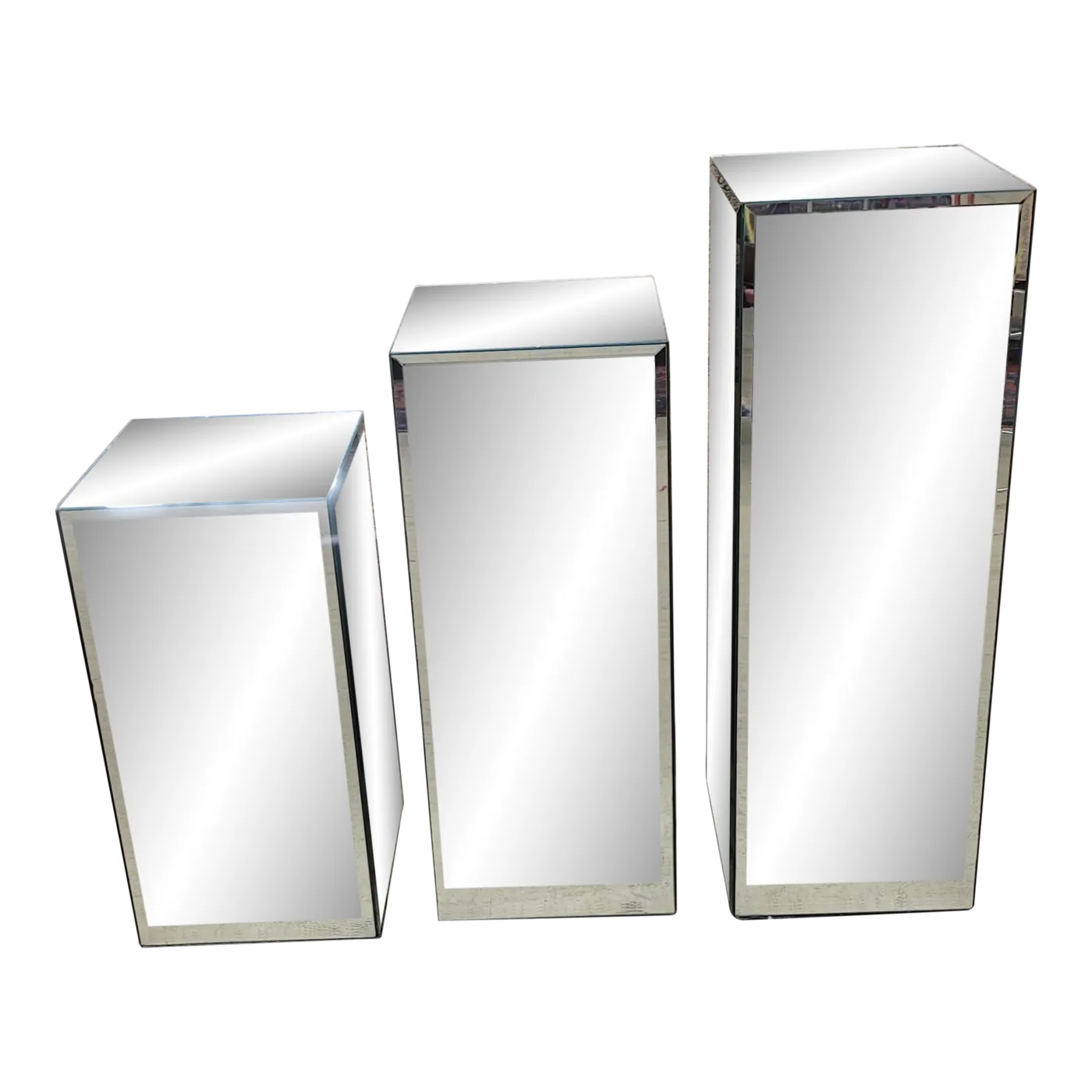 Set of 3 Graduated Modernist Beveled Glass Mirrored Pedestals Columns