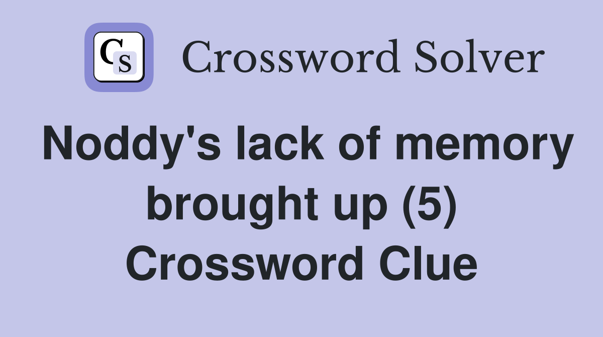 Noddy #39 s lack of memory brought up (5) Crossword Clue Answers