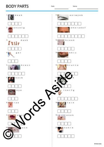 Vocabulary Worksheets Cards Crossword Word Search Anagram BODY PARTS