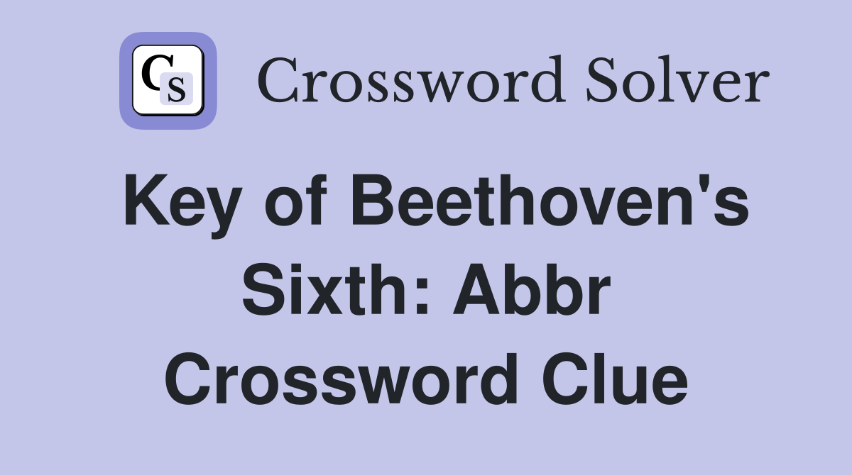Key of Beethoven s Sixth: Abbr Crossword Clue Answers Crossword Solver
