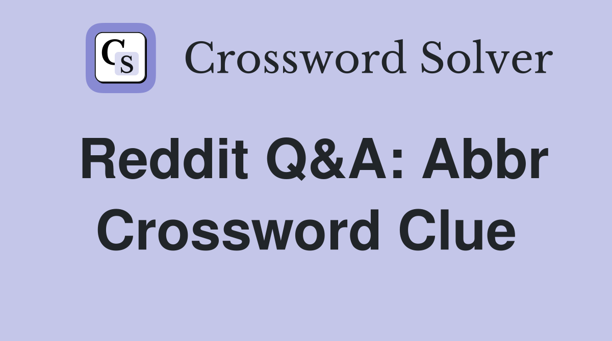 Reddit Q A: Abbr Crossword Clue Answers Crossword Solver