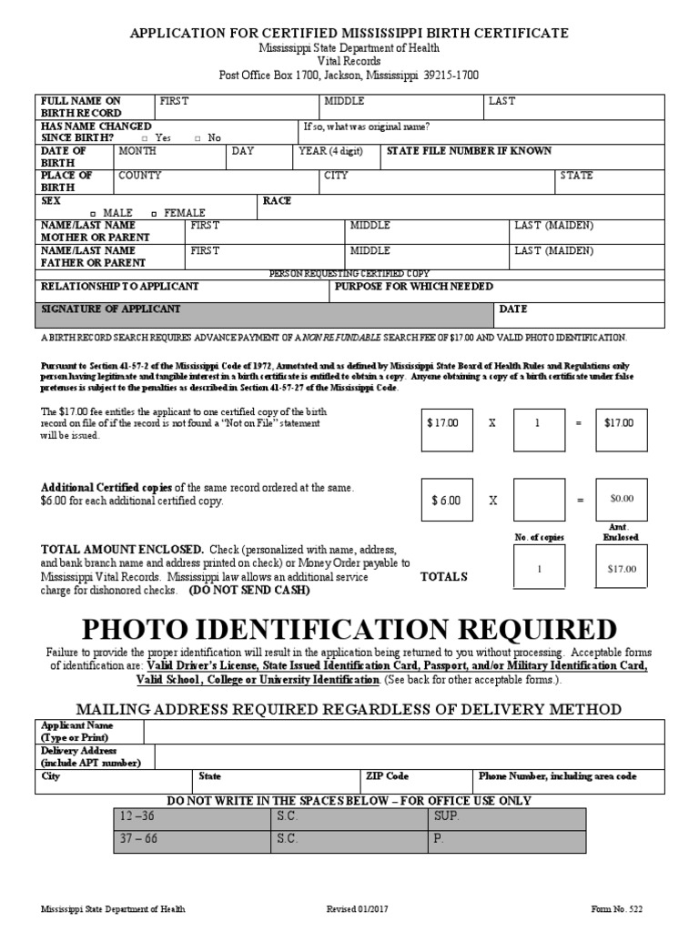 Application for Certified Mississippi Birth Certificate Mississippi