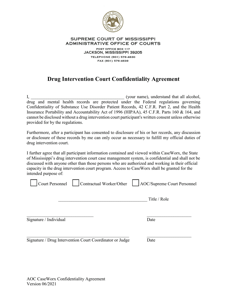 Mississippi Drug Intervention Court Confidentiality Agreement Fill