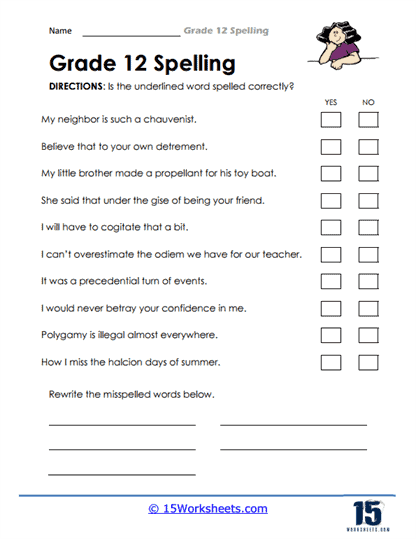 Misspelled Words Worksheet