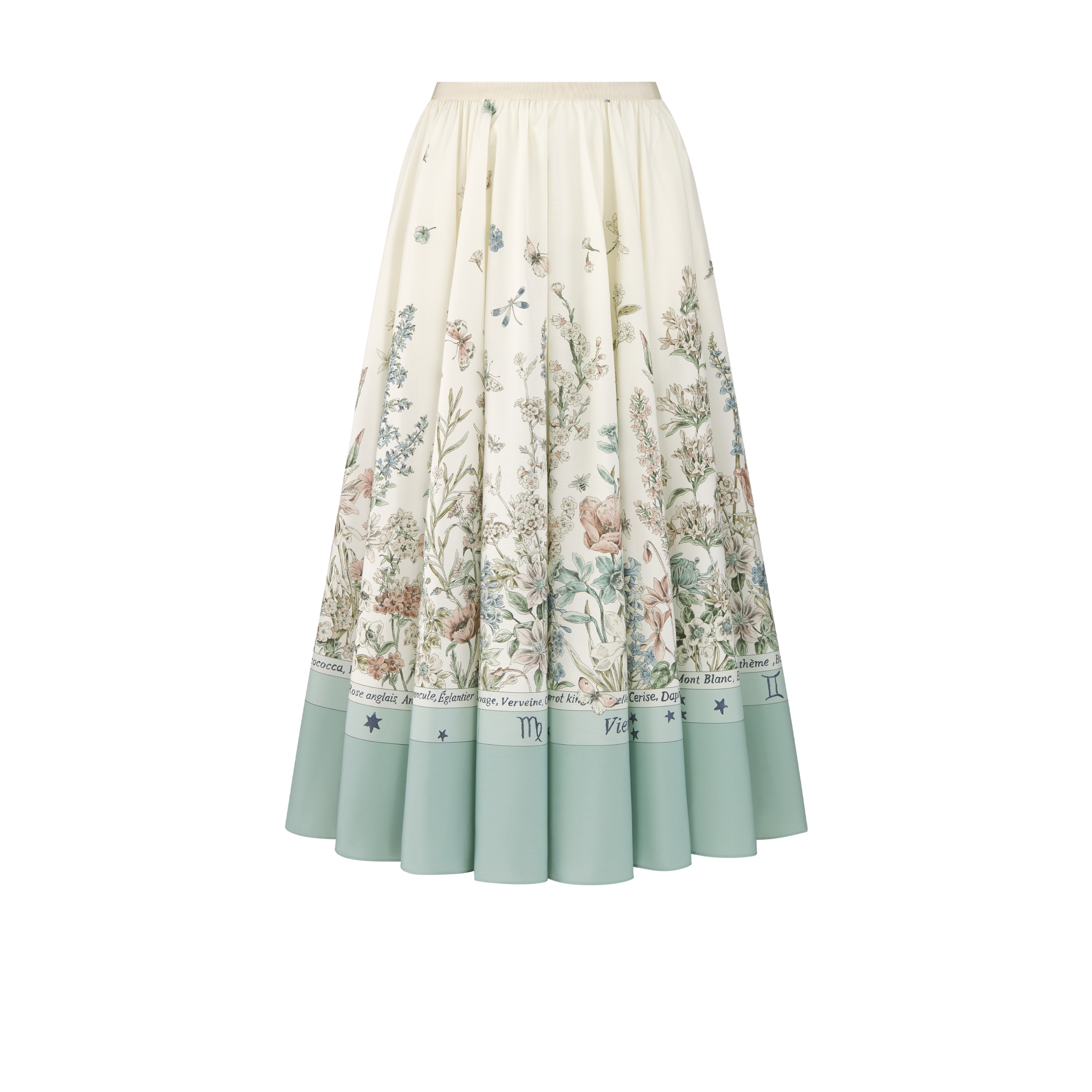 Ausgestellter Midirock Baumwollmusselin mit Dior Flowers Calendar