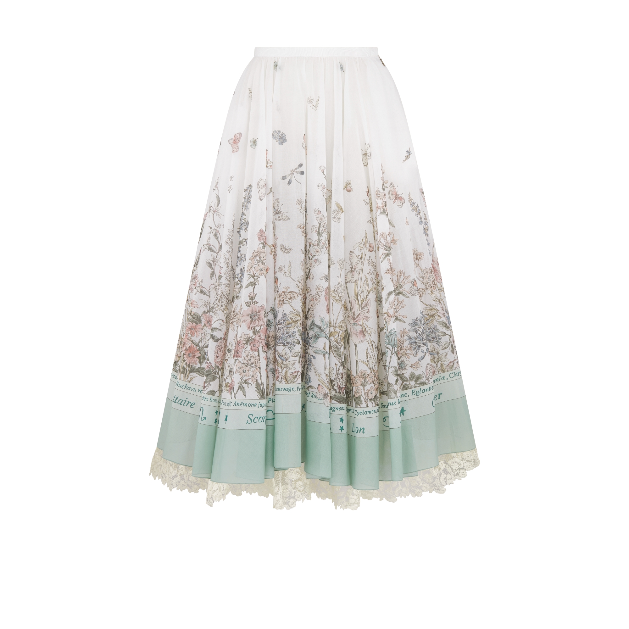 Ausgestellter Midirock Baumwollmusselin mit Dior Flowers Calendar