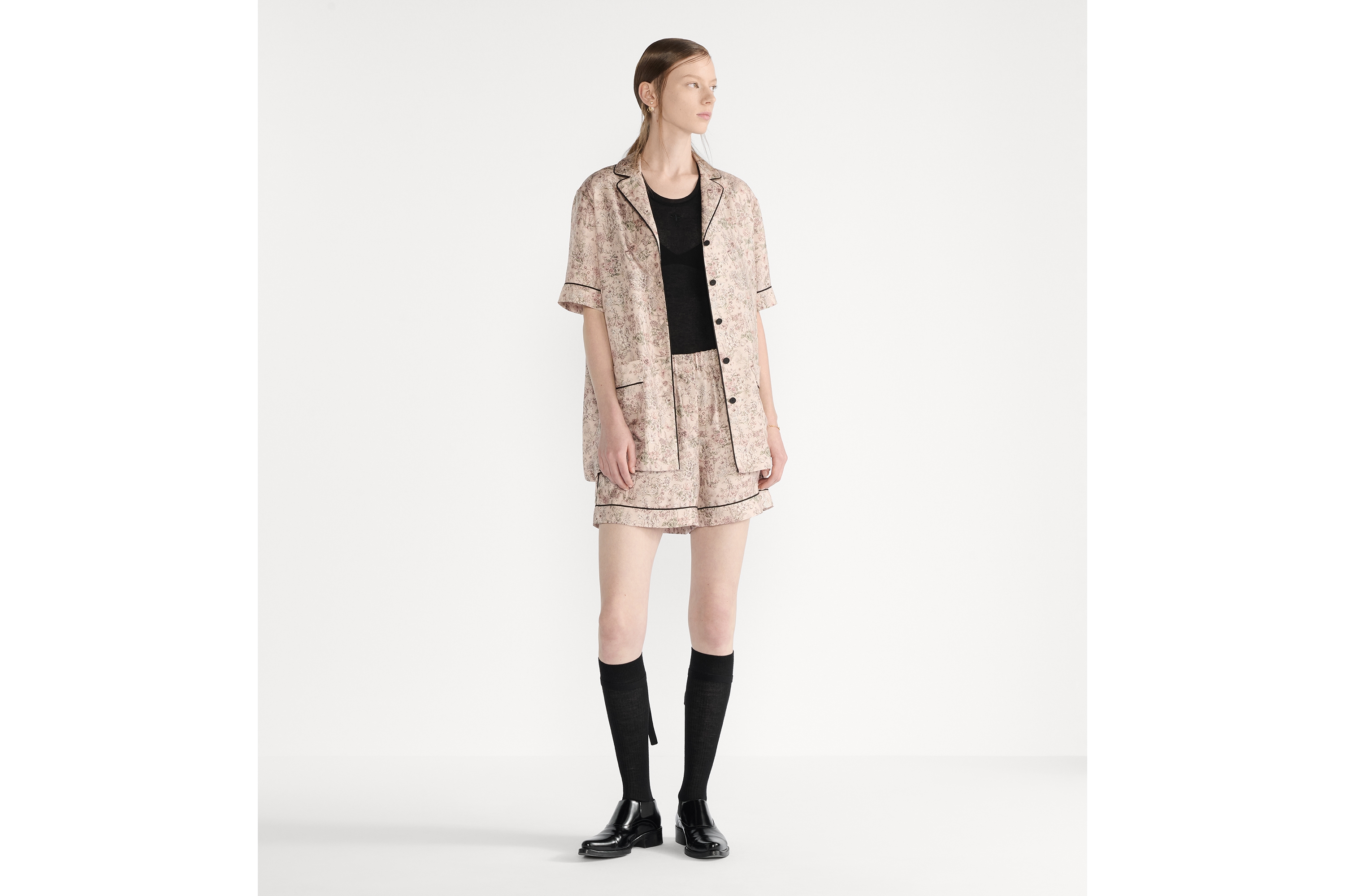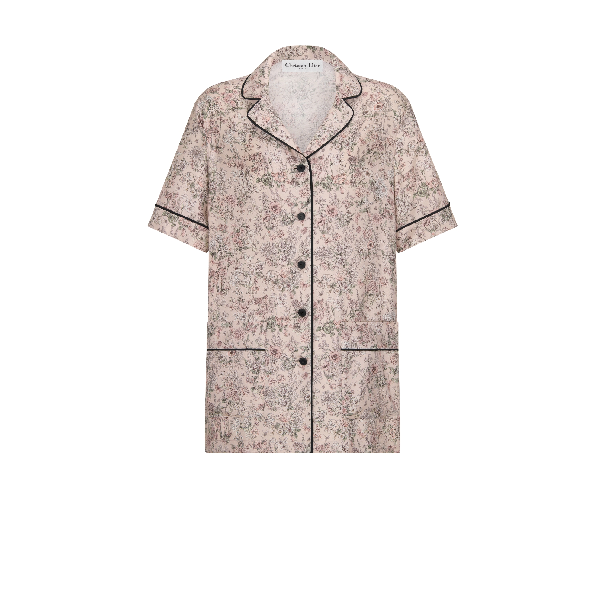 Kurzarmhemd Seidentwill mit Dior Flowers Calendar Allover Motiv in Rosa