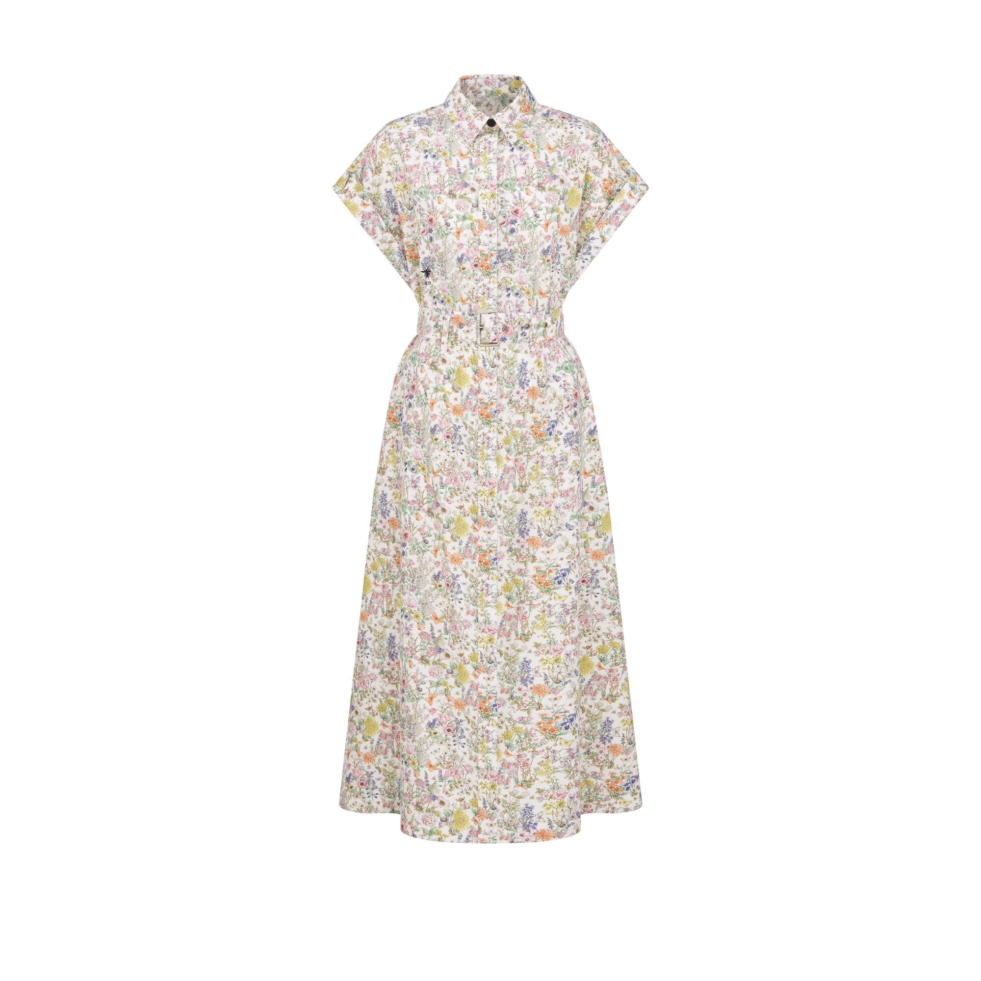 Midi Hemdkleid mit Gürtel Baumwoll und Seidenpopelin mit Dior Flowers