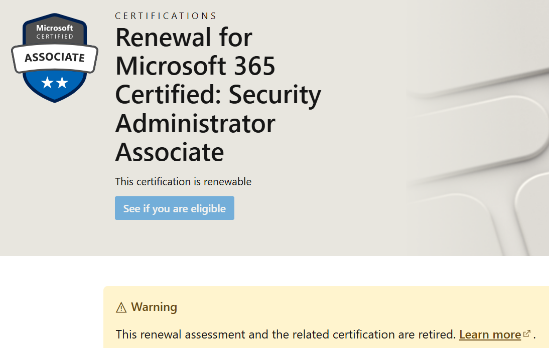 Unable to renew certificate for Microsoft 365 Certified: Security