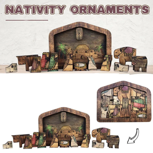 DIY HOLZ KRIPPENPUZZLE mit Holz verbranntem Design Skulptur Jesus