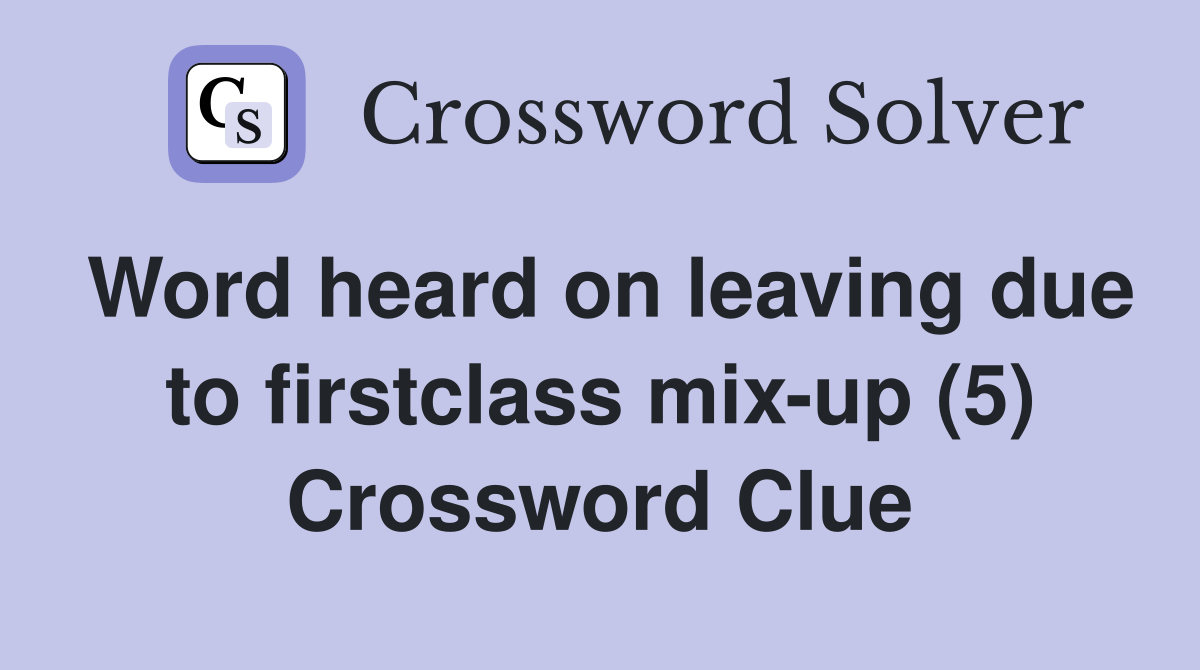 Word heard on leaving due to firstclass mix up (5) Crossword Clue