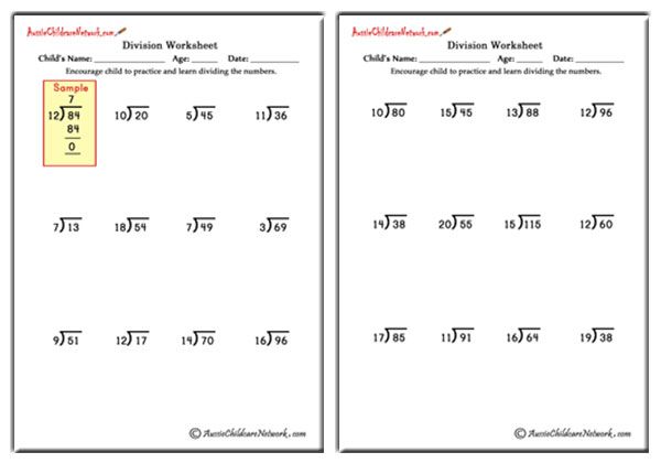 Mixed Division Worksheets (with and without Remainders) Aussie