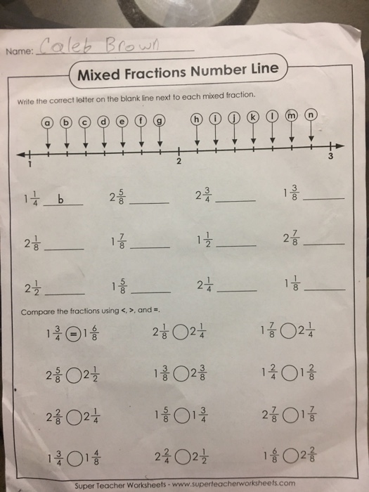 Solved Name:le ( Mixed Fractions Number Line Write the Chegg com