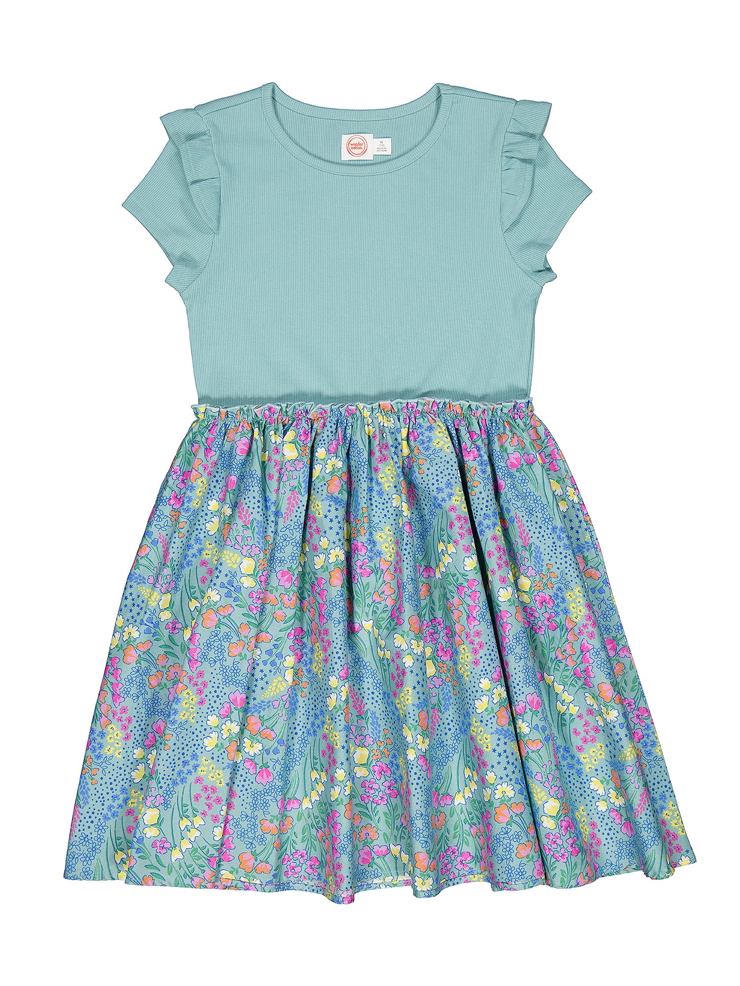 Wonder Nation Girls #39 Mixed Media Dress with Short Ruffle Sleeves Sizes