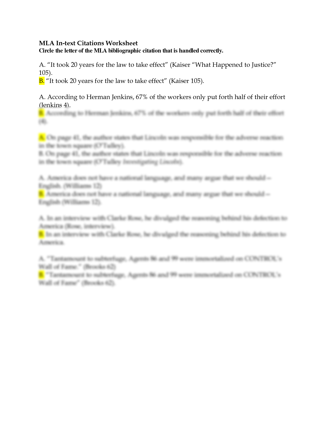 Here are some of the images for Mla Citation Practice Worksheet With Answers that we found in our website database.
