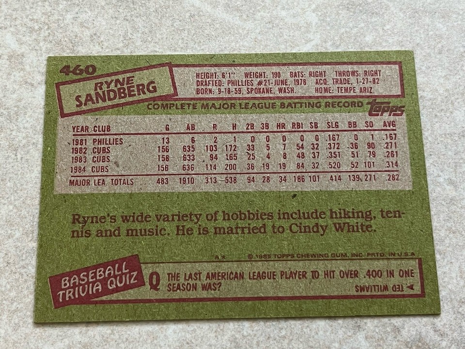 1985 Topps #460 Ryne Sandberg MLB Chicago Cubs eBay
