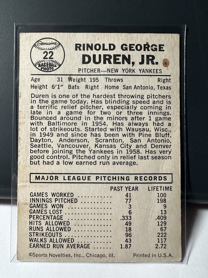 1960 LEAF MLB Baseball #22 Ryne Duren New York Yankees eBay