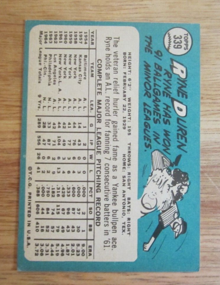 Ryne Duren 1965 Topps #339 Trading Card MLB Baseball Cincinnati Reds eBay