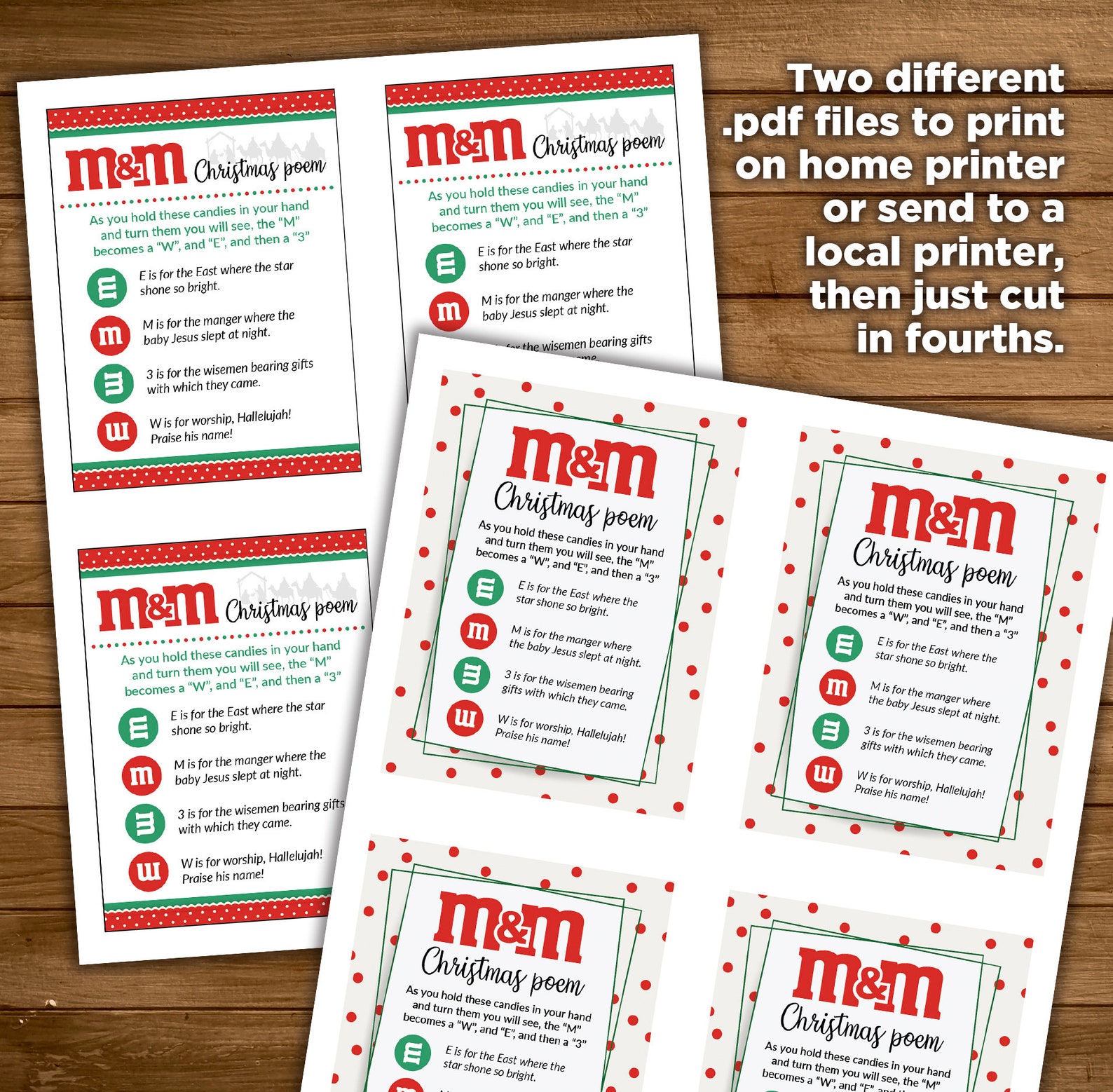 M M Christmas Candy Nativity Poem: Instant Download Gift Tag Christmas