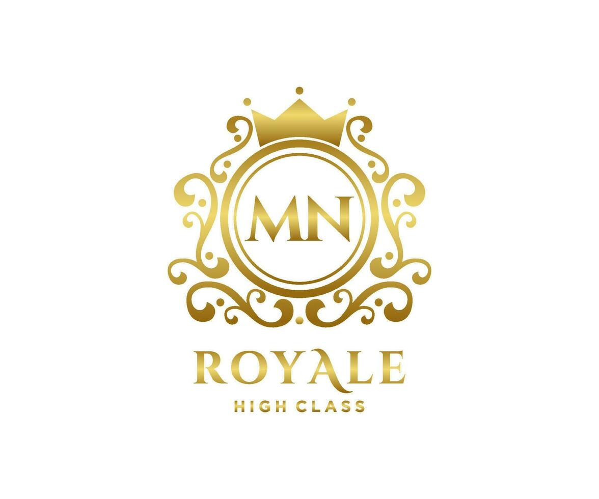 Golden Letter MN template logo Luxury gold letter with crown Monogram