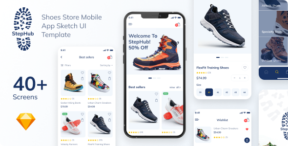 StepHub Shoes Store Mobile App Sketch UI Template by George Fx
