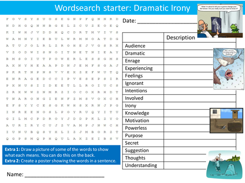 Drama Dramatic Irony Keyword Wordsearch Crossword Anagrams Brainstormer