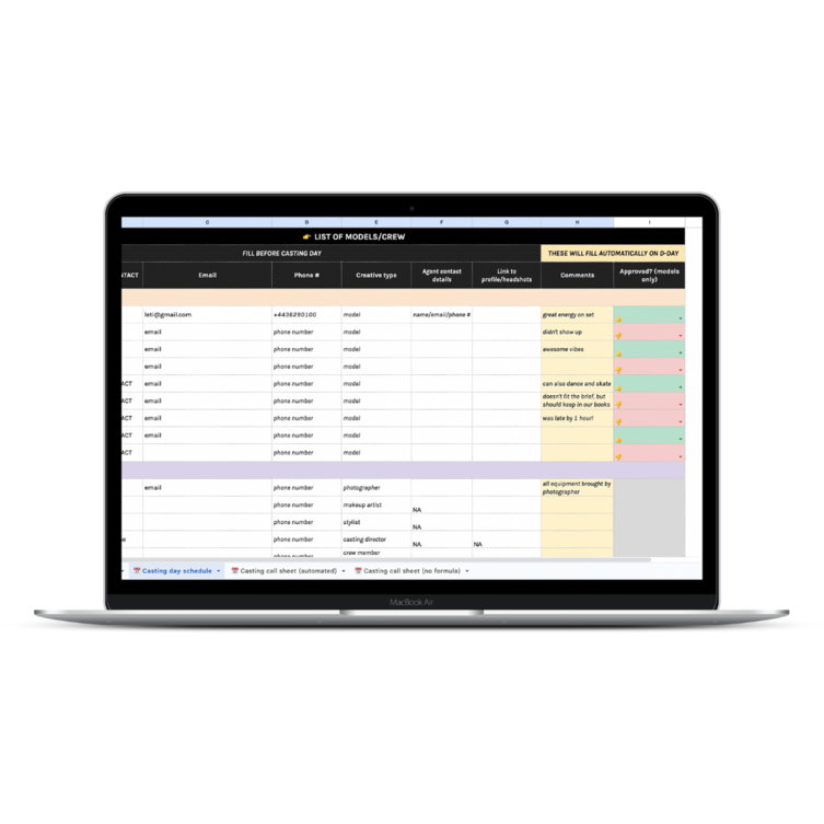 Casting Director Toolkit: Model Call Sheet Template Casting Planner