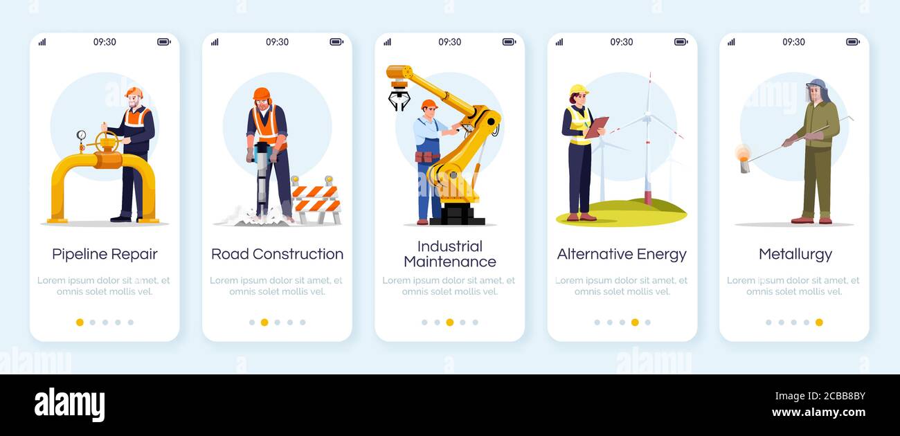 Engineers onboarding mobile app screen vector template Pipeline repair