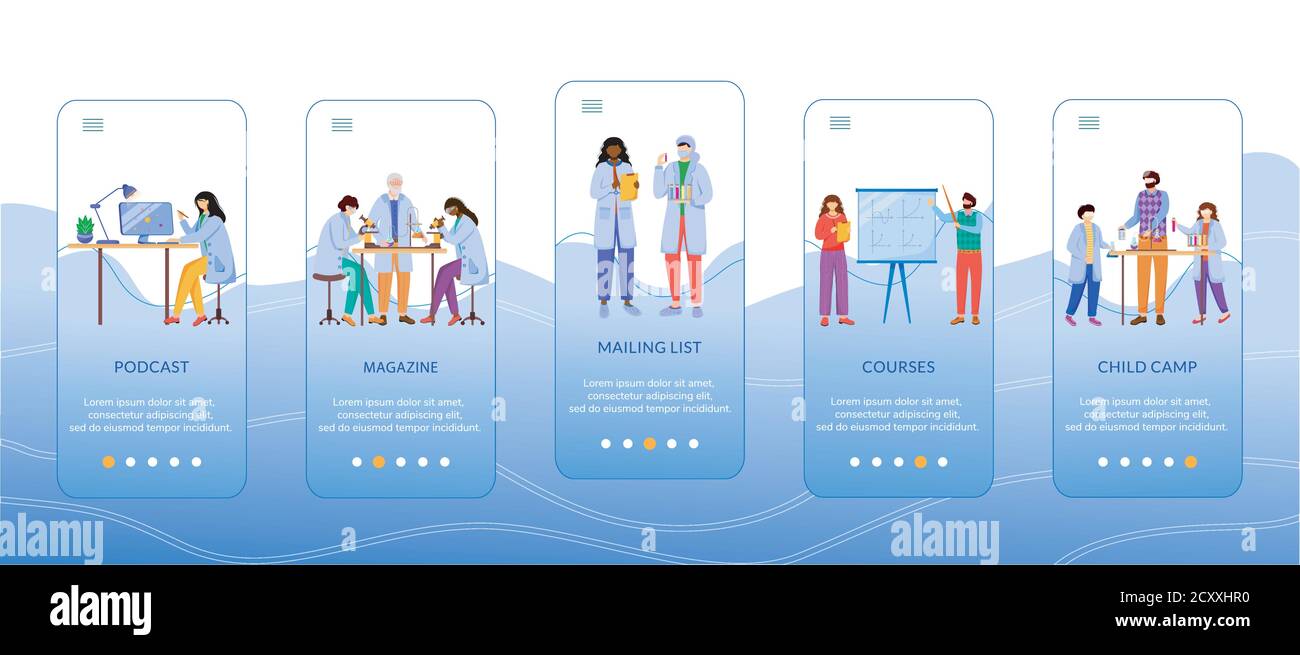 Science services onboarding mobile app screen vector template Stock