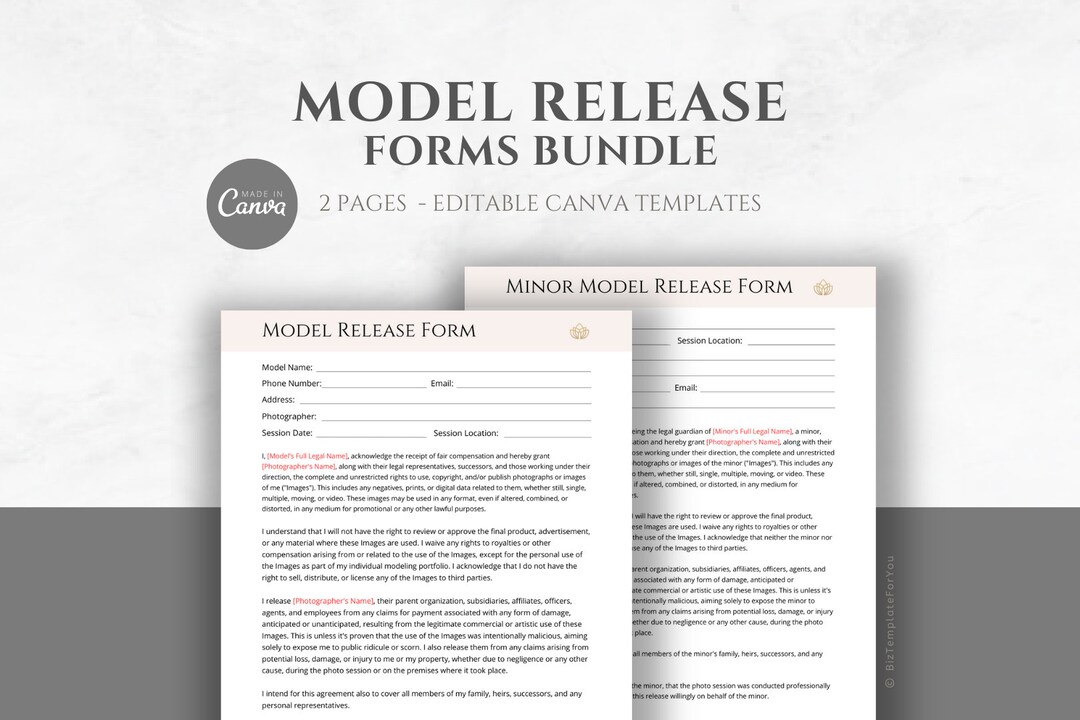 Editable Model Release Form Templates for Photographers Minor Etsy