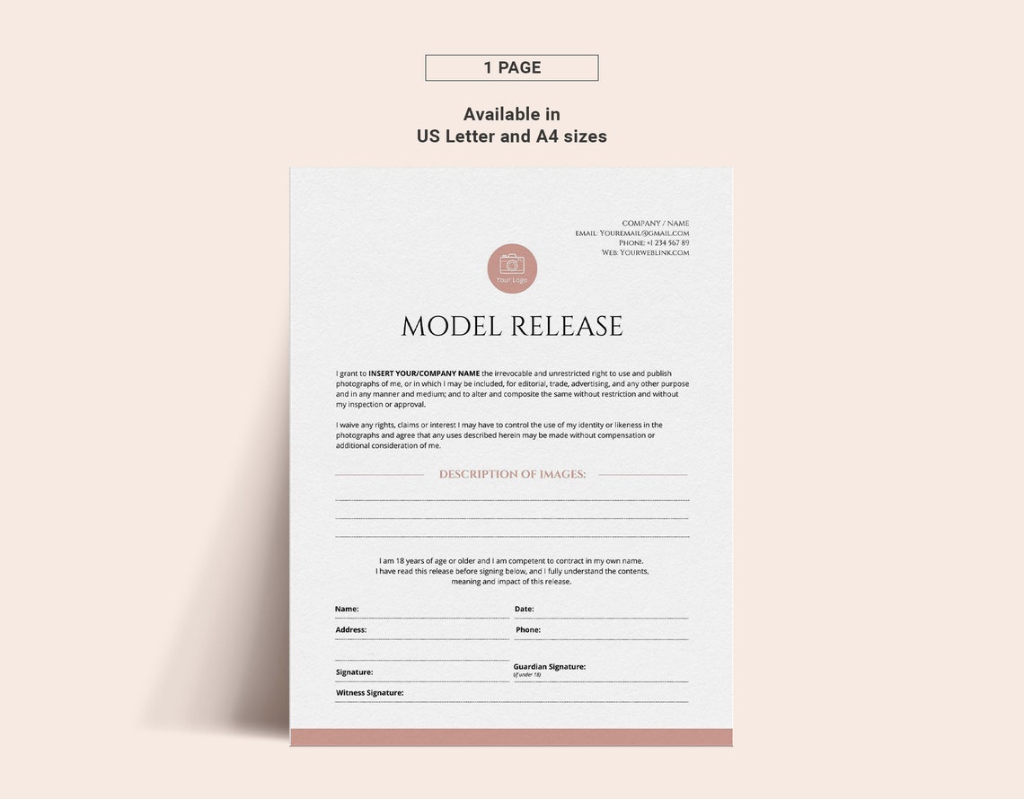 Editable Model Release Template for Photographers Photography Etsy UK