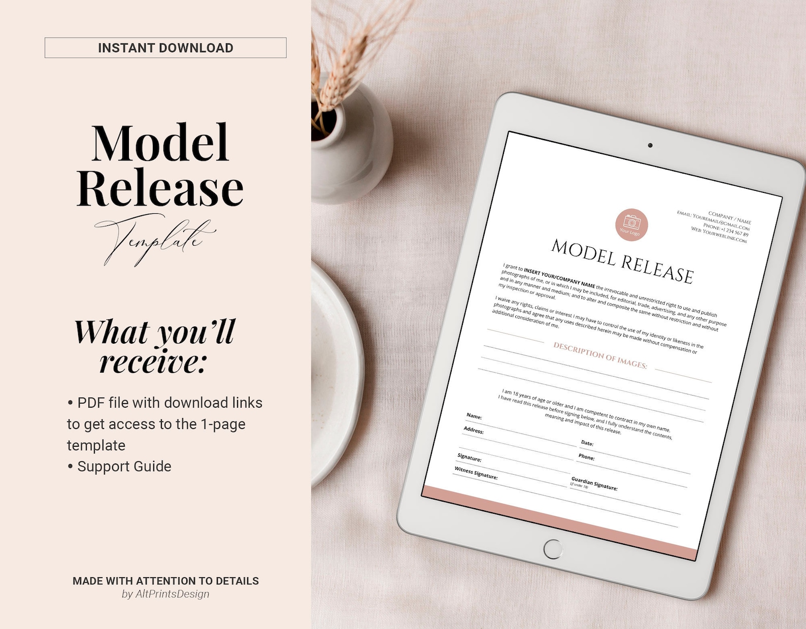 Editable Model Release Template for Photographers Photography Business