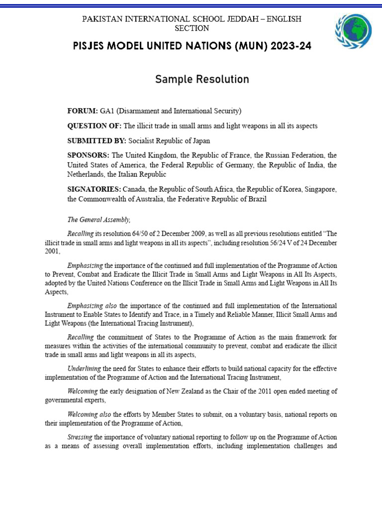 Sample Resolution MUN #39 24 PDF United Nations International Relations