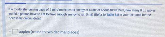 If a moderate running pace of 5 min/km expends energy Chegg com