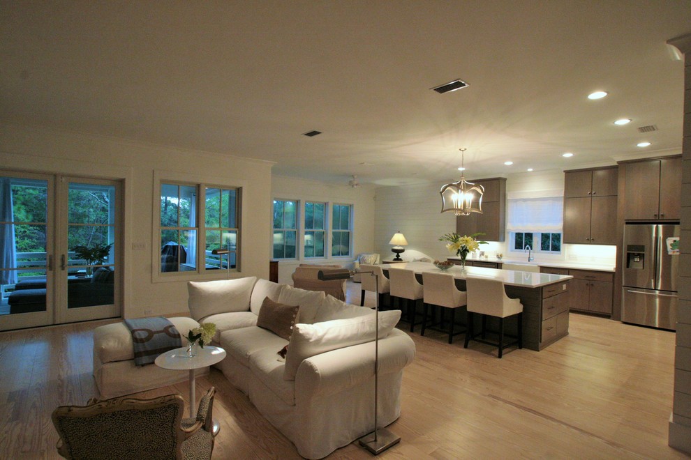 Expansive Living Area Featuring Comfortable Seating Sleek Kitchen