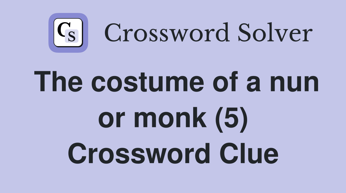 The costume of a nun or monk (5) Crossword Clue Answers Crossword
