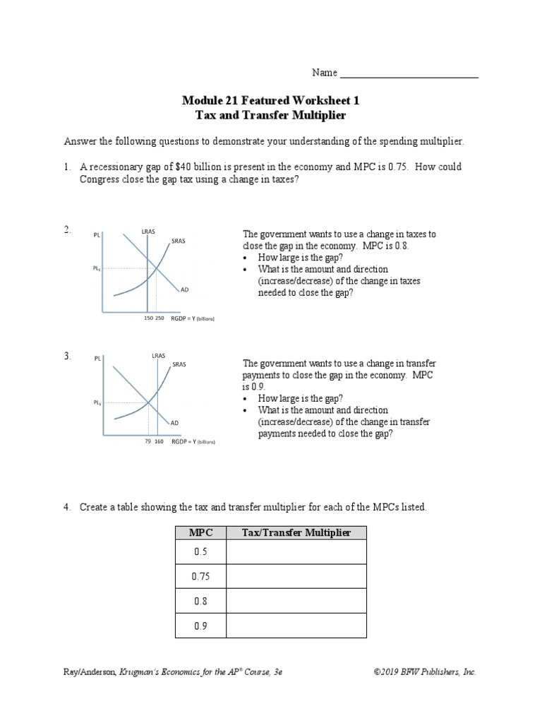 Module 21 Featured Worksheet 1 Tax and Transfer Multiplier PDF