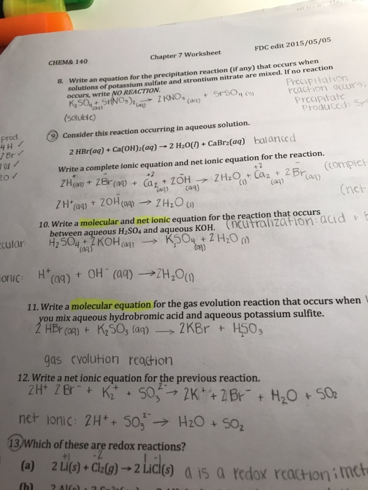 Molecular Complete And Net Ionic Equations Worksheet With Answers