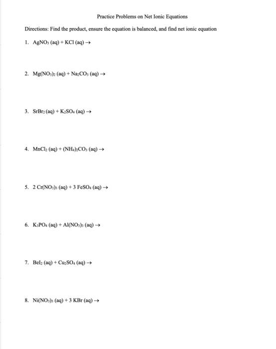 How to Write Complete and Net Ionic Equations Chemistry Worksheet