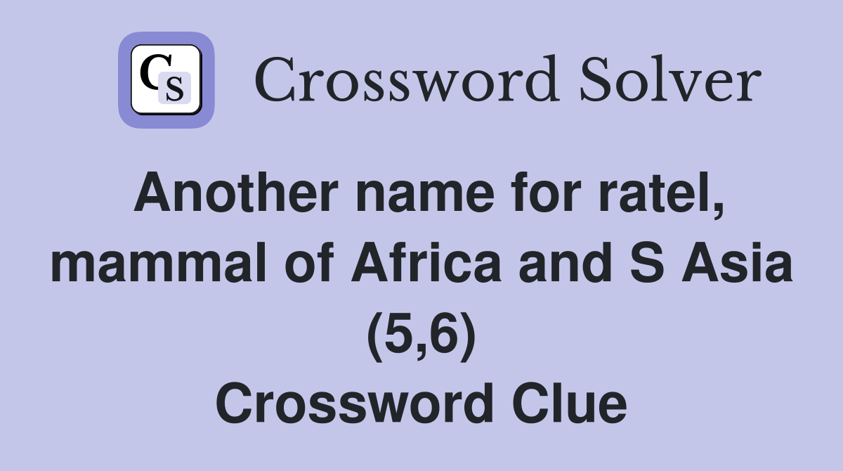 Another name for ratel mammal of Africa and S Asia (5 6) Crossword