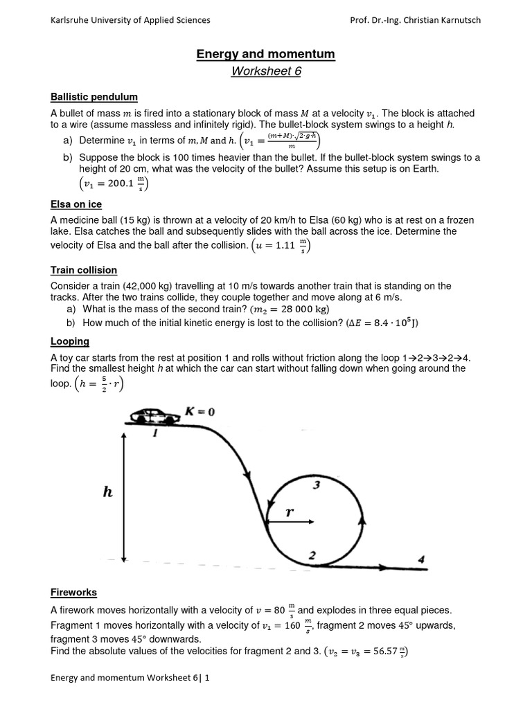 Worksheet 6 Energy and Momentum PDF Collision Momentum