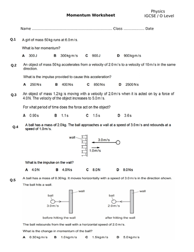 Momentum Worksheet with Answers Physics IGCSE O level Teaching