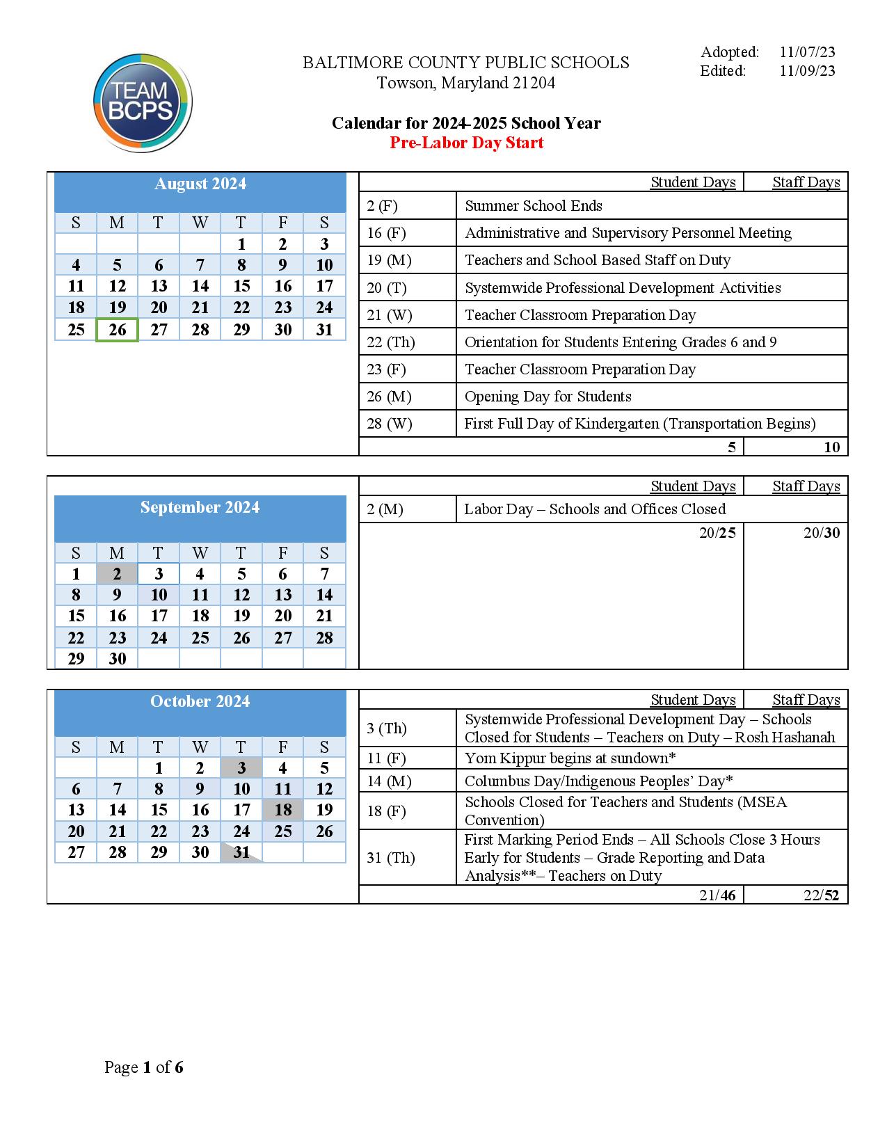 Baltimore County Public Schools Calendar 2025 2026
