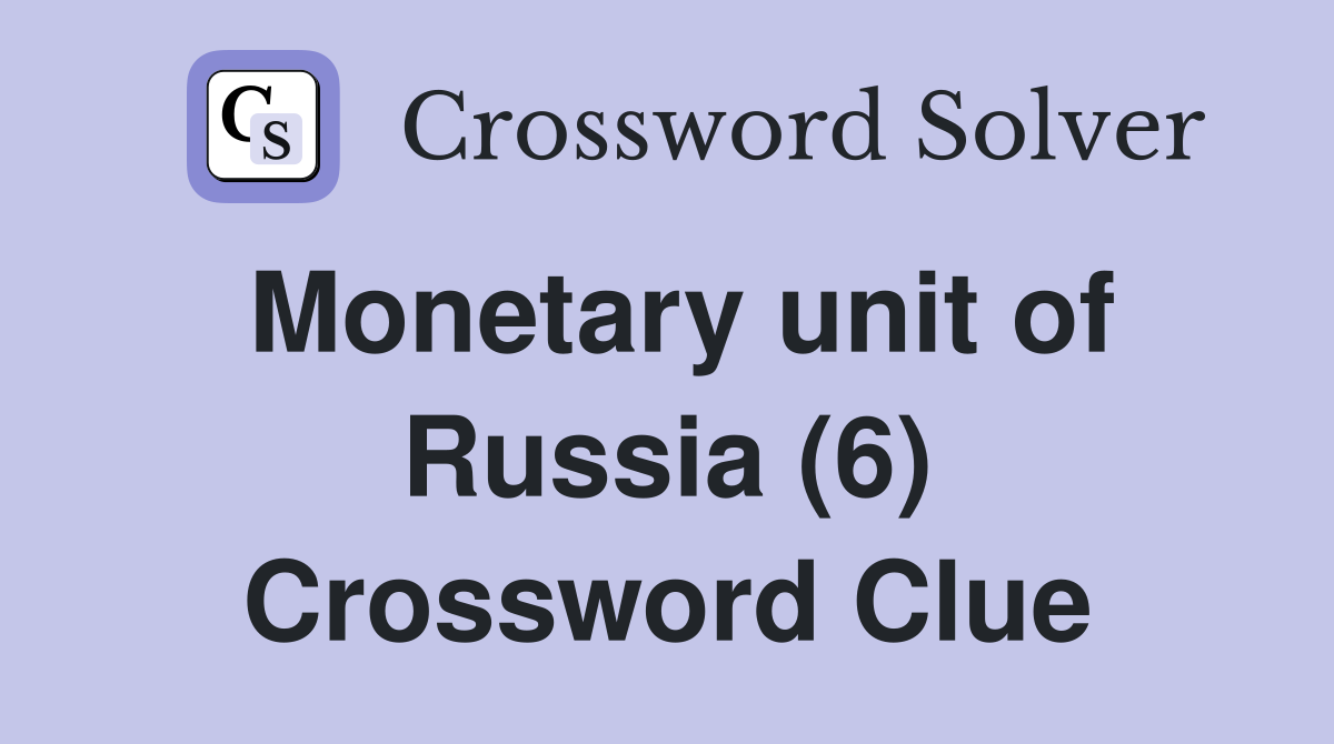 Monetary unit of Russia (6) Crossword Clue Answers Crossword Solver